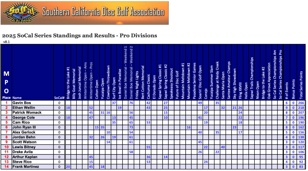 Don’t forget: in addition to divisional titles, SoCal series points determine some automatic qualifying spots for the T. Ske CA Cup, plus SoCal’s new awards for the Nichols Cup (most total points) and SoCal’s Iron Golfer. It looks to me like Hailey Fitzgerald and Randall Cook hold narrow leads in that final category… but things are far from over!